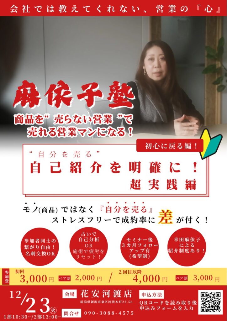 【12/23 開催】麻依子塾 ”売らない営業”で売れる営業マンに!