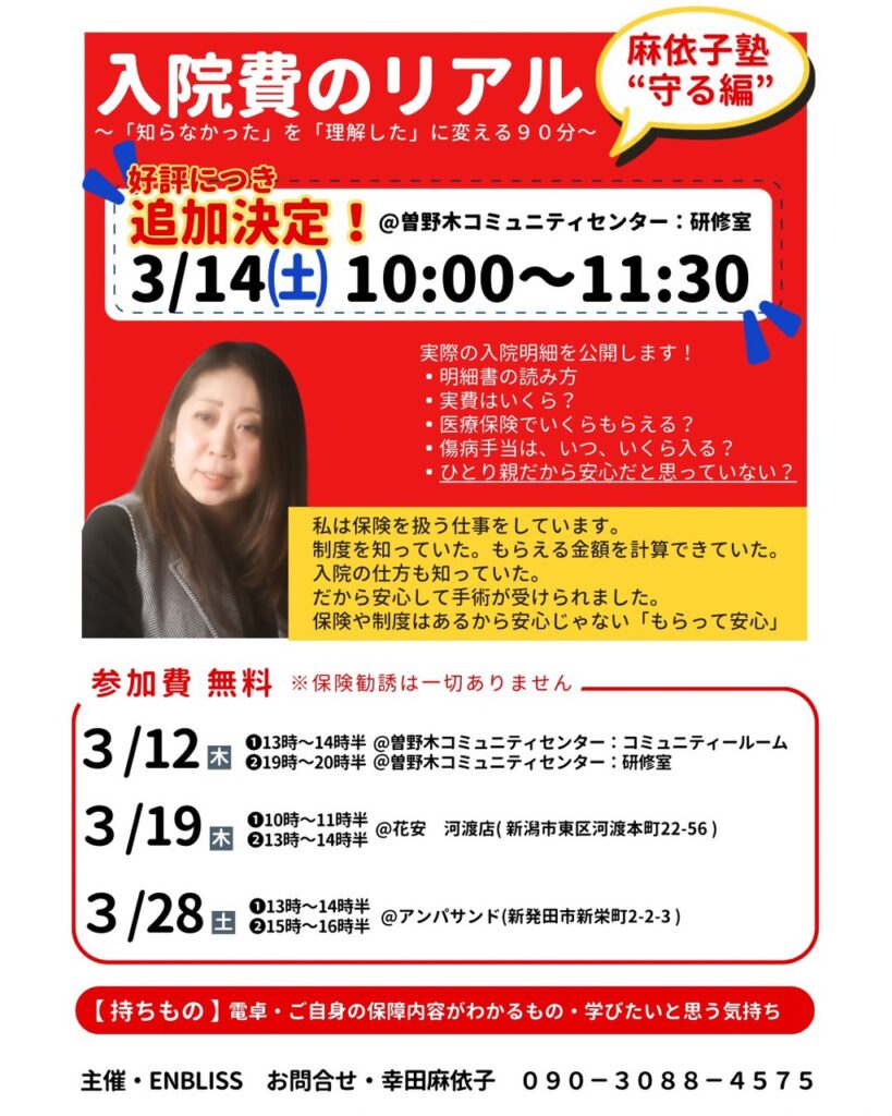 【R8.3月開催】麻依子塾”守る編”「入院費のリアルを知る講座」